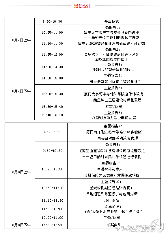 | 中國(guó)水產(chǎn)頻道報(bào)道, 在疫情相對(duì)穩(wěn)定、可控的前提下,廈門(mén)迎來(lái)了重量級(jí)“水產(chǎn)養(yǎng)殖展覽會(huì)暨智慧漁業(yè)綠色發(fā)展峰會(huì)”。活動(dòng)將大咖云集,包括行業(yè)主管部門(mén)領(lǐng)導(dǎo)、行業(yè)管理研究專(zhuān)家、知名大學(xué)教授、水產(chǎn)養(yǎng)殖領(lǐng)域的前沿技術(shù)專(zhuān)家、學(xué)者、技術(shù)服務(wù)人員、水產(chǎn)養(yǎng)殖戶(hù)、行業(yè)合作社、經(jīng)銷(xiāo)商、供應(yīng)商等踴躍參與,共同探討國(guó)家政策、行業(yè)發(fā)展方向、互動(dòng)釋疑、高端前沿技術(shù)普及與交流。“2020廈門(mén)水產(chǎn)養(yǎng)殖展覽會(huì)暨智慧漁業(yè)綠色發(fā)展峰會(huì)”將把重點(diǎn)放在水產(chǎn)養(yǎng)殖新觀念、新產(chǎn)品、綠色生態(tài)、現(xiàn)代工廠化等應(yīng)用技術(shù)方面,同時(shí)開(kāi)展各種技術(shù)、應(yīng)用、發(fā)展趨勢(shì)、商務(wù)交流,真正實(shí)現(xiàn)研發(fā)、生產(chǎn)、銷(xiāo)售、應(yīng)用全供應(yīng)鏈對(duì)接。“2020廈門(mén)水產(chǎn)養(yǎng)殖展覽會(huì)暨智慧漁業(yè)綠色發(fā)展峰會(huì)”即將為您提供超值服務(wù)! 觀眾登記 咨詢(xún)電話:0592-3984166,13720887447 |