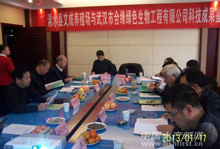 2013年1月17日,由黃岡市科學技術局組織的武漢合緣綠色生物工程有限公司與浠水縣文成養殖場的“微生物酵素菌肥在稻魚蝦生態種養中的應用技術”項目鑒定會在武昌召開。出席項目鑒定會的專家有中國水產科學研究院長江水產研究所白遺勝研究員、中國科學院水生生物研究所汪建國研究員、華中農業大學水產學院魏開建教授、湖北省水產技術推廣中心主任馬達文研究員、華中農業大學動科院葛向陽教授、湖北省水產科學研究所雷曉中研究員、湖北工業大學皮科武教授、浠水縣農業局王友平研究員等。鑒定會由黃岡市科技局童吉根副局長主持,黃岡市和浠水縣科技局的有關部門負責人見證了鑒定會全程。